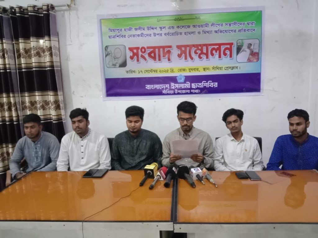 সাঁথিয়ায় মিয়াপুর স্কুল এন্ড কলেজে হামলা ও ভাংচুরের ঘটনায় ছাত্র শিবিরের সংবাদ সম্মেলন
