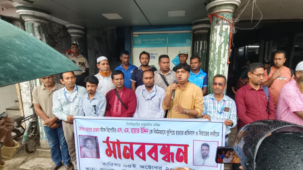 সাংবাদিক এসএম হায়াত উদ্দিনকে কুপিয়ে হত্যার প্রতিবাদ ও বিচারের দাবিতে নাটোরে মানববন্ধন