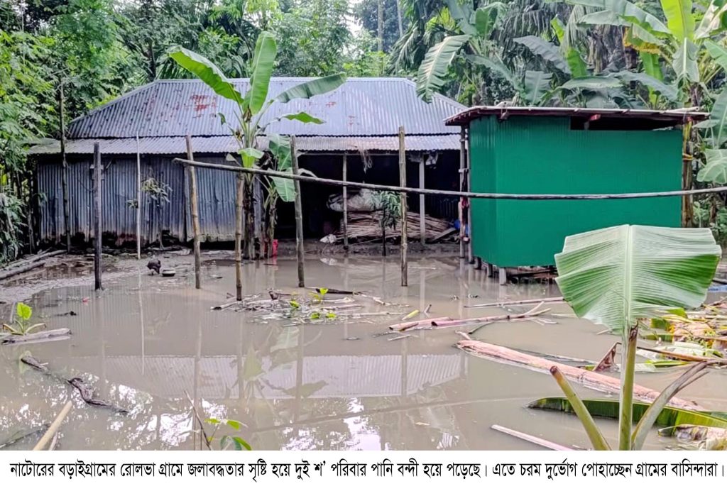 পানি নিষ্কাশনের পথ বন্ধ বড়াইগ্রামে জলাবদ্ধতায় দুই শ’ পরিবার পানিবন্দী রান্না-বান্না বন্ধ, দুর্ভোগ চরমে