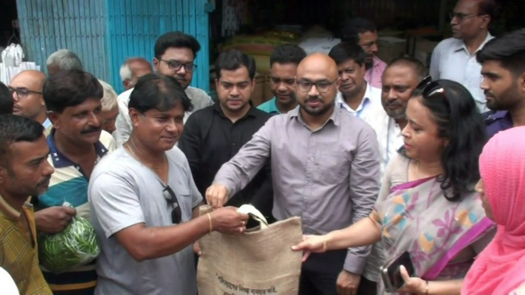 নান্দনিক নাটোর গড়ার প্রত্যেয়ে ক্রেতা ও বিক্রেতার মাঝে পরিবেশ বান্ধব পাটের ব্যাগ বিতরণ