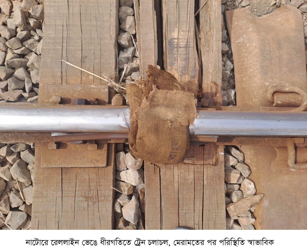 নাটোরে রেললাইন ভেঙে ধীরগতিতে ট্রেন চলাচল, মেরামতের পর পরিস্থিতি স্বাভাবিক