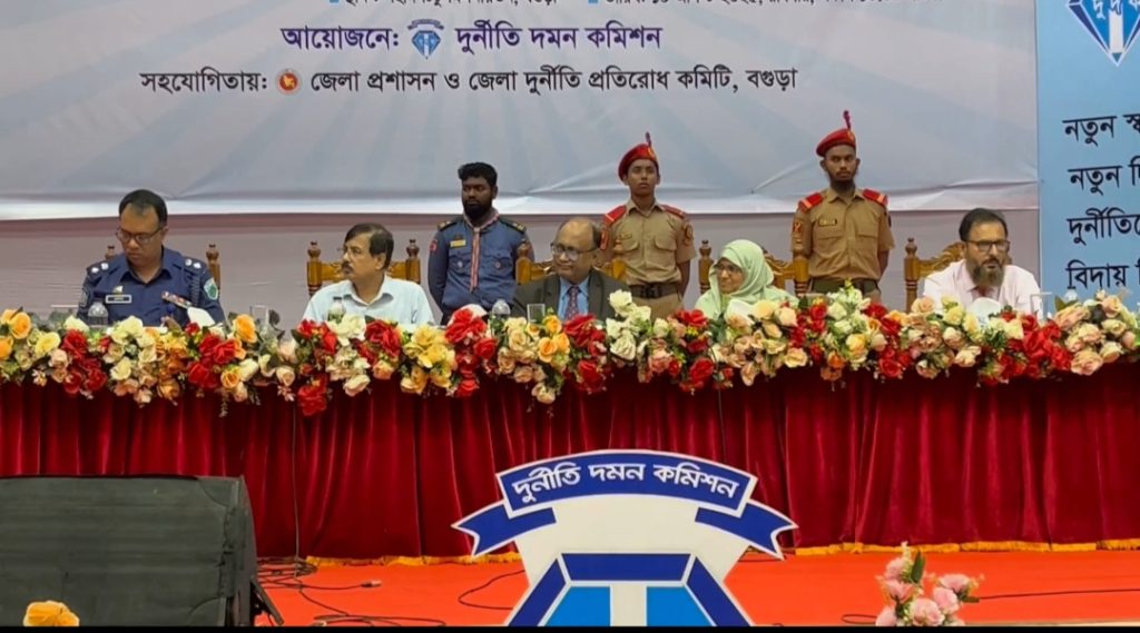 ৫৭টি অভিযোগের শুনানি করলেন দুদক চেয়ারম্যান বগুড়ায় দুদকের গণশুনানিতে মঞ্চ লক্ষ্য করে জুতা নিক্ষেপ