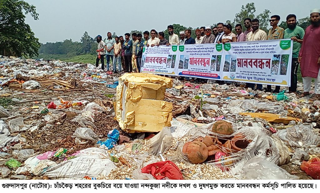নন্দকুজা নদী দখল-দূষণমুক্ত করার দাবিতে মানববন্ধন