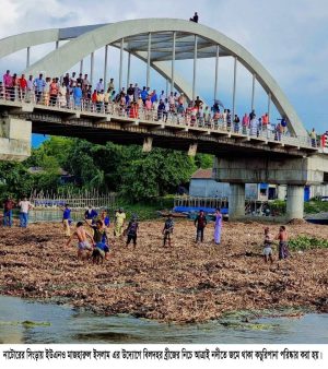 সে দাবি বাস্তবায়নে ইউএনও মাজহারুল ইসলাম উপজেলা পরিষদের অর্থায়নে দেড় কিলোমিটার নদীর কচুরিপানা পরিষ্কার করতে নিজে দাঁড়িয়ে থেকে শ্রমিক দিয়ে কাজ শুরু করেন।