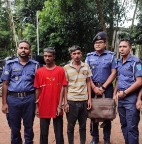 মশাহিদ আহমদ, মৌলভীবাজার : শ্রীমঙ্গল উপজেলার কাকিয়াছড়া চা বাগানে কলেজছাত্র ও ওয়াইফাই অপারেটর কর্মী হৃদয় আহমেদ ইয়াছিন (১৯) হত্যা মামলার মূল রহস্য উদঘাটন করেছে মৌলভীবাজার জেলা পুলিশ। এই ঘটনায় জড়িত দুই আসামিকে গ্রেফতার এবং হত্যাকা-ে ব্যবহৃত গামছা, স্কুল ব্যাগ, মোবাইল ও একটি মোটরসাইকেল উদ্ধার করা হয়েছে। গ্রেফতারকৃতরা হলেন- মোঃ কাজল মিয়া (২০), সে পেশায় টমটম চালক। তার বাড়ী কিশোরগঞ্জ জেলার কুলিয়ারচর থানারদাড়িয়াকান্দি গ্রামের। বর্তমানে শ্রীমঙ্গল শাহীবাগ এলাকায় বসবাস করে। মোঃ সিরাজুল ইসলাম (২১), পেশায় বাদাম বিক্রেতা। সে ব্রাহ্মণবাড়িয়া জেলার সরাইল থানার রাজাপুর গ্রামের বাসিন্দা। বর্তমানে শ্রীমঙ্গল শাহীবাগ এলাকায় বসবাস করে। পুলিশ জানায়- আটককৃত দুইজনই মাদকাসক্ত। নিহত হৃদয় আহমেদ ইয়াছিন কমলগঞ্জ সরকারি কলেজের একাদশ শ্রেণির ছাত্র ছিলেন। শ্রীমঙ্গল কালীঘাট রোড এলাকায় ওয়াইফাই অপারেটর হিসেবে কাজ করতেন। অনলাইনে জুয়ায় আসক্ত হয়ে তিনি বন্ধুর কাছ থেকে ধার নেওয়া টাকার দেনায় জড়িয়ে পড়েন। এ নিয়ে বিরোধের জেরে এ হত্যাকা- সংঘটিত হয় বলে প্রাথমিক জিজ্ঞাসাবাদে গ্রেফতারকৃতরা স্বীকার করে। জানা গেছে- গত ৭ জুলাই সকালে শ্রীমঙ্গল উপজেলার কালিঘাট ইউনিয়নের কাকিয়াছড়া চা বাগান ১ নম্বর সেকশন এলাকায় একটি গাছের নিচে বেল্ট দিয়ে বাঁধা অবস্থায় হৃদয়ের মরদেহ দেখতে পেয়ে এলাকাবাসী পুলিশকে খবর দেয়। পুলিশ ঘটনাস্থলে গিয়ে একটি গাছের সাথে গলায় বেল্ট পেচানে অবস্থায় একটি মরদেহ উদ্ধার করে। এরপর বিভিন্নভাবে খোঁজ খবর নিয়ে লাশের পরিচয় শনাক্ত করা হয়। পরবর্তীতে অজ্ঞাত আসামিদের বিরুদ্ধে শ্রীমঙ্গল থানার মামলা (নং- ১৪) রুজু করা হয়। লাশ উদ্ধার পর পরই মৌলভীবাজার জেলার পুলিশ সুপার এম. কে. এইচ জাহাঙ্গীর হোসেন, পিপিএম-সেবা এর নির্দেশনায় অতিরিক্ত পুলিশ সুপার (ক্রাইম অ্যান্ড অপস) নোবেল চাকমা ও সহকারী পুলিশ সুপার (শ্রীমঙ্গল সার্কেল) আনিসুর রহমানের তত্ত্বাবধানে শ্রীমঙ্গল থানার অফিসার ইনচার্জ আমিনুল ইসলামের নেতৃত্বে একটি বিশেষ তদন্ত টিম গঠন করা হয়। শহরের সিসিটিভি ফুটেজ, তথ্যপ্রযুক্তি বিশ্লেষণ এবং গোপন তথ্যের ভিত্তিতে দুই আসামির অবস্থান শনাক্ত করা হয়। পরবর্তীতে এসআই অলক বিহারী গুণ ও এসআই মোঃ মহিবুর রহমানের নেতৃত্বে ব্রাহ্মণবাড়িয়া জেলার রাজাপুর এলাকায় অভিযান চালিয়ে দুইজনকে গ্রেফতার করা হয়। তাদের স্বীকারোক্তিতে হত্যায় ব্যবহৃত গামছা, স্কুল ব্যাগ, ভিকটিমের মোবাইল এবং মোটরসাইকেল উদ্ধার করা হয়। গ্রেফতারকৃতদের জিজ্ঞাসাবাদে জানা যায়- ভিকটিম হৃদয়ের কাছে প্রায় ২২ হাজার টাকা পাওনা ছিল কাজলের। পরবর্তীতে চাকরি দেওয়ার কথা বলে ঢাকায় 