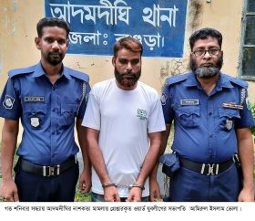 আদমদীঘি (বগুড়া) প্রতিনিধি ঃ বগুড়ার আদমদীঘিতে বিএনপি অফিসে হামলা, ভাঙচুর সংক্রান্ত নাশকতা মামলায় ওয়ার্ড যুবলীগের সভাপতি আমিরুল ইসলাম ভোলা (৪২) কে গ্রেপ্তার করেছে পুলিশ। গত শনিবার (১৯ জুলাই) সন্ধ্যায় তার নিজ এলাকা থেকে গ্রেপ্তার করা হয়। গ্রেপ্তারকৃত আমিরুল ইসলাম ভোলা আদমদীঘি উপজেলার উথরাইল গ্রামের নজরুল ইসলামের ছেলে। সে সান্তাহার ইউনিয়নের ১নং ওয়ার্ড যুবলীগের সভাপতি ছিলেন।
