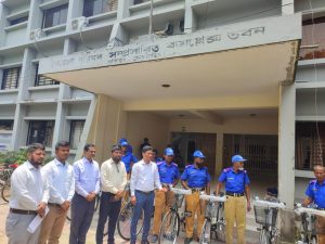 ঠাকুরগাঁও জেলার হরিপুর উপজেলায় ৫৪ জন গ্রাম পুলিশকে বাইসাইকেল ও পোশাক প্রদান করেছে উপজেলা প্রশাসন। গ্রাম পর্যায়ে আইন-শৃঙ্খলা রক্ষা, তথ্য সংগ্রহ ও জরুরি বার্তা পৌঁছানোর কাজে নিয়োজিত গ্রাম পুলিশদের চলাচল আরও গতিশীল করতে এ উদ্যোগ নেওয়া হয়েছে।