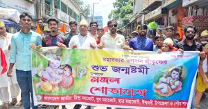 হরেকৃষ্ণ সম্প্রদায়ের মন্দির হতে মঙ্গল শোভাযাত্রা বের হয়। শোভাযাত্রায় ব্যান্ডপার্টি, খোল-করতালসহ বিভিন্ন বাদ্যযন্ত্র নিয়ে এবং বর্ণিল সাজে সনাতন ধর্মালম্বিদের নারী ও পুরুষ অংশগ্রহন করেন।