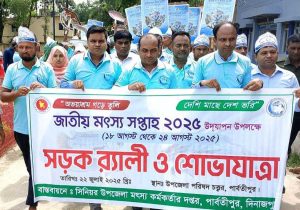 ‘অভয়াশ্রম গড়ে তুলি, দেশি মাছে দেশ ভরি’ প্রতিপাদ্যকে সামনে রেখে দেশের মৎস্যসম্পদের সম্প্রসারণ, সংরক্ষণ, উন্নয়ন এবং টেকসই ব্যবহারে জনসচেতনতা সৃষ্টির লক্ষ্যে পার্বতীপুরে জাতীয় মৎস্য সপ্তাহ উদযাপন করা হয়েছে।