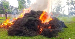 মঙ্গলবার (১৯ আগস্ট) বিকেলে পরিচালিত এ অভিযানে বিপুল পরিমাণ চায়না দুয়ারী জাল ও কারেন্ট জাল জব্দ করা হয়, যার আনুমানিক বাজারমূল্য প্রায় ১৩ লাখ টাকা।