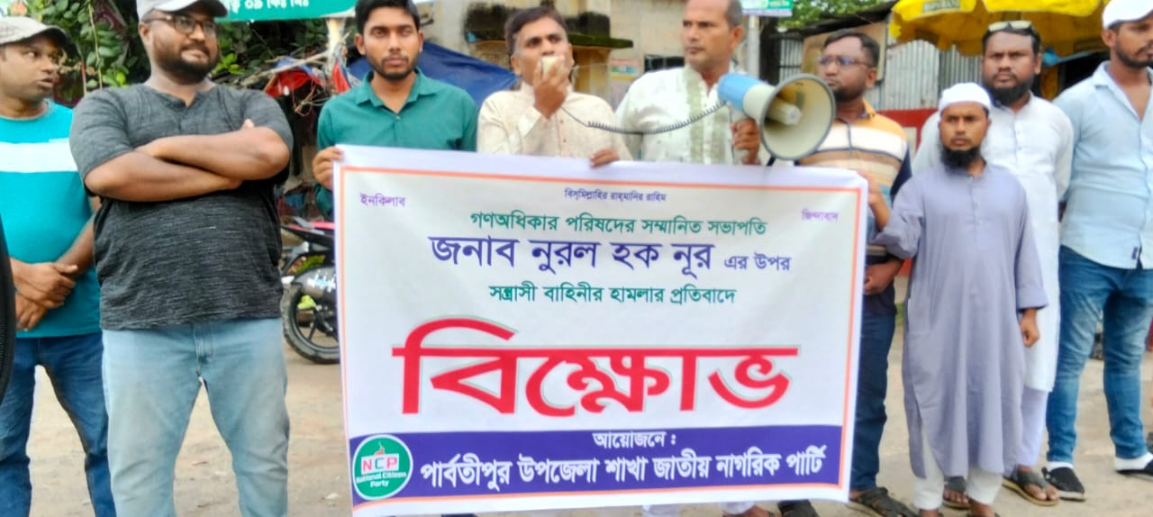 গণধিকার পরিষদের সভাপতি ও ঢাকা বিশ্ববিদ্যালয়ের সাবেক ভিপি নুরুল হক নুরের উপর হামলার প্রতিবাদে পার্বতীপুরে বিক্ষোভ ও প্রতিবাদ কর্মসূচি পালিত হয়েছে।