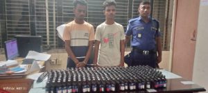 র্যাব-১৩ এর আভিযানিক দল গোপন সংবাদের ভিত্তিতে বিকাল ০৪.১৫ ঘটিকায় দিনাজপুর জেলার পার্বতীপুর মোজাফফর নগর মোঃ জাকির হোসেন এর বসত বাড়িতে অভিযান পরিচালনা করে ধৃত আসামী ১। মোঃ মানিক শেখ (২৩) ও ২।মোঃ জাহিদ সৈনিক (১৯)’দ্বয়ের শয়ন কক্ষের খাটের নিচে ০২ টি প্লাস্টিকের বস্তার ভেতরে রক্ষিত ২৬৭ বোতল ফেন্সিডিল জব্দসহ আসামি ১। মোঃ মানিক শেখ (২৩), ২।মোঃ জাহিদ সৈনিক (১৯), উভয় পিতা- মোঃ জাকির হোসেন, উভয় সাং- মুজাফফরনগর, থানা- পার্বতীপুর, জেলা- দিনাজপুর গ্রেফতার করতে সক্ষম হয়।পরবর্তী কার্যক্রমের জন্য গ্রেফতারকৃত আসামিদ্বয়কে সংশ্লিষ্ট থানায় হস্তান্তর করা হয়েছে।