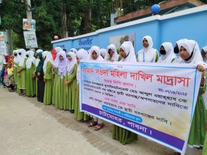 রোববার (৭ সেপ্টেম্বর) বেলা ১১টায় উপজেলা পরিষদের সামনে মাদ্রাসার অভিভাবক ও শিক্ষার্থীদের ব্যানারে মানববন্ধন কর্মসূচি পালন করে। পরে বিক্ষোভ মিছিল শেষে উপজেলা নির্বাহী অফিসার ও মাধ্যমিক শিক্ষা কর্মকর্তার কাছে স্মারকলিপি প্রদান করা হয়। ঘন্টাব্যাপি এই মানববন্ধন কর্মসূচিতে মাদ্রাসার শতাধিক অভিভাবক অংশগ্রহণ করে।