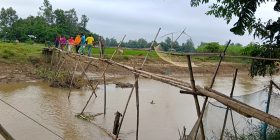 মুহাম্মদ আবু হেলাল, শেরপুর প্রতিনিধি : স্বাধীনতার ৫৪ বছর পরও শেরপুরের ঝিনাইগাতী উপজেলার হাতীবান্দা ইউনিয়নের মালিঝি নদীর উপর স্থায়ী সেতু হয়নি। ফলে নদীর দুই তীরে থাকা অন্তত ৯টি গ্রামের কয়েক হাজার মানুষ আজও যোগাযোগ বিচ্ছিন্ন জীবন-যাপন করছে। ভরসা কেবল একটি বাঁশের সাকো, যা প্রতি বছর পাহাড়ি ঢলে ভেঙে যায়। এতে ভোগান্তি চরমে পৌঁছেছে স্থানীয়দের।