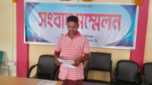 সংবাদ সম্মেলনে বক্তব্য রাখেন বাট্টাজোড় ইউনিয়ন স্বেচ্ছাসেবক দলের সদস্য মো. ফোরকান মিয়া।
