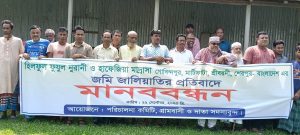 মানববন্ধনে নারী-পুরুষসহ শতাধিক মানুষ অংশগ্রহণ করেন।