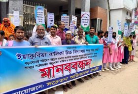বগুড়ায় ইয়াকুবিয়া বালিকা উচ্চ বিদ্যালয়ে পড়াশোনার পরিবেশ সমুন্নত রাখতে কলেজ শাখার পাঠদানের অনুমোদন বাতিল ও সকল অনিয়ম দুর্নীতির সুষ্ঠু তদন্তের দাবিতে মানব-বন্ধন অনুষ্ঠিত হয়েছে। মঙ্গলবার সকালে বিদ্যালয়ের সামনে অভিভাবক ও শিক্ষার্থীরা প্ল্যাকার্ড হাতে এই কর্মসূচি পালন করেন।