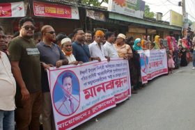 মঙ্গলবার (৭ অক্টোবর) বিকেল সাড়ে ৪ টার দিকে পৌর শহরের স্টেশন রোডে ঈশ্বরদী প্রেসক্লাবের সামনের সড়কের উপর দাড়িয়ে “ভুক্তভোগী ঈশ্বরদীবাসী’র ব্যানারে এ মানববন্ধন কর্মসূচি পালন করা হয়।