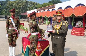 কামরুল হাসান, টাঙ্গাইল প্রতিনিধি: টাঙ্গাইলের ঘাটাইলে শহীদ সালাহউদ্দিন সেনানিবাসে বাংলাদেশ সেনাবাহিনীর আর্মি মেডিকেল কোরের ৮২ তম রিক্রুট ব্যাচ প্রশিক্ষণের সেনাবাহিনী প্রধান কুচকাওয়াজ অনুষ্ঠিত হয়েছে। বুধবার (১৫ অক্টোবর) সকালে শহীদ সালাহউদ্দিন সেনানিবাসের আর্মি মেডিকেল কোর সেন্টার এন্ড স্কুল মাঠে এ অনুষ্ঠানের আয়োজন করা হয়। অনুষ্ঠানে প্রধান অতিথি হিসেবে ১৯ পদাতিক ডিভিশনের জিওসি ও ঘাটাইল এরিয়া কমান্ডার মেজর জেনারেল মোহা. হোসাইন আল মোরশেদ উপস্থিত থেকে কুচকাওয়াজ পরিদর্শন ও অভিবাদন গ্রহণ করেন।