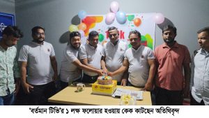 দক্ষিণ কুমিল্লার জনপ্রিয় অনলাইন ভিক্তিক সংবাদ মাধ্যম ‘বর্তমান টিভি’র ১০০ হাজার (১ লাখ) ফলোয়ার পূর্ণ হওয়ায় ১৫ অক্টোবর বুধবার সন্ধ্যায় নাঙ্গলকোট সাংবাদিক ইউনিয়ন কার্যালয়ে কেক কেক কাটা ও আলোচনা সভা অনুষ্ঠিত হয়েছে। যুগান্তর প্রতিনিধি মো: মুহিবুল ইসলামের উপস্থাপনায় কুরআন তেলাওয়াত করেন মাইরাগাঁও নূরানী হাফেজিয়া মাদ্রাসার পরিচালক সাফায়েত উল্লাহ আইয়ুবী। স্বাগত বক্তব্য রাখেন বর্তমান টিভির ব্যবস্থাপক ও আমাদের সময় প্রতিনিধি মো: শাহাদাত হোসেন । অতিথির বক্তব্য রাখেন নাঙ্গলকোট সাংবাদিক ইউনিয়নের সভাপতি ও কালবেলার প্রতিনিধি মো: ওমর ফারুক, সাধারণ সম্পাদক ও ভোরের কাগজ প্রতিনিধি হুমায়ুন কবির, শিক্ষক ও কবি মোহাম্মদ সোহরাব হোসেন, দপ্তর সম্পাদক রিয়াজ উদ্দিন তানভীর, কবি অশ্রæ শাহ আলম, কবি আজিম উল্যাহ হানিফ, এনএস টিভি প্রতিনিধি জাহাঙ্গীর আলম, আবদুর রহমান তামিম, জুনায়েদ ইসলাম তাওহীদ প্রমুখ।