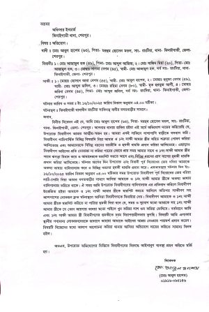 বাদীর অভিযোগ সূত্রে জানা যায়, আব্দুল আজিজের ছেলে মো. আজামুল হক (৪৯), তার স্ত্রী মোছা. সালমা বেগম (৪৫) এবং ছেলে মো. সাজিদ মিয়া (২০)—তিনজনই বাদীর ঘনিষ্ঠ আত্মীয়। দীর্ঘদিন ধরে জমি-সংক্রান্ত বিরোধ নিয়ে তাদের মধ্যে পারিবারিক দ্বন্দ্ব চলছিল। ওই বিরোধের জেরে অভিযুক্তরা প্রায়ই বাদী ও তার স্ত্রীকে ভয়ভীতি ও প্রাণনাশের হুমকি দিয়ে আসছিলেন। এরি জেরে গত ১৬ অক্টোবর বিকেল ৪টার দিকে অভিযুক্তরা লাঠিসোটা নিয়ে বাদীর বাড়ির সামনে এসে অশালীন ভাষায় গালিগালাজ শুরু করেন। এসময় প্রতিবাদ করলে তারা ক্ষিপ্ত হয়ে বাদী ও তার স্ত্রীকে মারধরের চেষ্টা চালান। স্থানীয় লোকজন দ্রুত এগিয়ে এলে অভিযুক্তরা পালিয়ে যায়। পালানোর সময় অভিযুক্তরা বাদী দম্পতিকে হত্যার হুমকি দিয়ে বলেন, “সময় ও সুযোগ পেলে তোমাদের মেরে লাশ গুম করে ফেলব।” ফলে বাদী ও তার স্ত্রী বর্তমানে চরম নিরাপত্তাহীনতায় ভুগছেন বলে অভিযোগে উল্লেখ করা হয়েছে।
