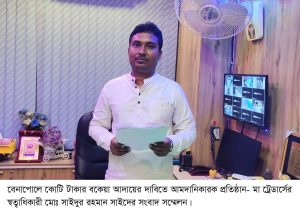 সোমবার (২০ অক্টোবর) বিকেলে বেনাপোল রহমান চেম্বারের চতুর্থ তলায় মা ট্রেডার্স অফিস কক্ষে আয়োজিত এক সংবাদ সম্মেলনে লিখিত বক্তব্যে তিনি এ অভিযোগ করেন।