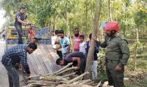 জানা যায় আজ দুপর ১২ টার দিকে দিনাজপুরের পাবর্তীপুরের হাবড়া বন বিভাগের কতিপয বন রক্ষা কমিটির সভাপতি আওয়ামী লীগের নেতা মোকছেদুল আলম তার দুই পুত্রকে নিয়ে হাবড়া বনের মুল্যবান অপ্রাপ্ত গাছ কেটে নিয়ে যাওয়ার সময় স্থানীয়রা গাছসহ ভ্যান আটক করে । স্থানীয়রা বন বিভাগে খবর দিলে মধ্যপাড়া রেজ্ঞ কর্মকর্তা আল আমিন হক তার সঙ্গীয় ফোর্স নিয়ে এসে কাটা গাছসহ ভ্যান জব্দ করে নিয়ে যায়। এ ব্যাপারে মামলা হবে কিনা জানতে চাইলে তিনি বলেন, দিনাজপুর বিভাগীয বন কর্মকর্তাকে অবহিত করা হবে। তিনি যে ব্যবস্থা নিতে বলবে আমি সেই মতে ব্যবস্থা গ্রহন করবো।