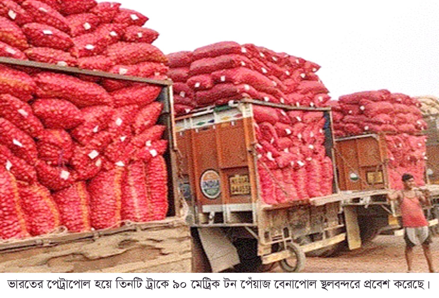 শেখ কাজিম উদ্দিন, বেনাপোল (যশোর) প্রতিনিধি : দীর্ঘ তিন মাসের স্থবিরতা কাটিয়ে আবারও বেনাপোল স্থলবন্দর দিয়ে ভারত থেকে পেঁয়াজ আমদানি শুরু হয়েছে। সোমবার (১৫ ডিসেম্বর-২৫) বিকেল ৪টার দিকে ভারতের পেট্রাপোল বন্দর হয়ে তিনটি ট্রাকে মোট ৯০ মেট্রিক টন পেঁয়াজ বাংলাদেশে প্রবেশ করেছে।