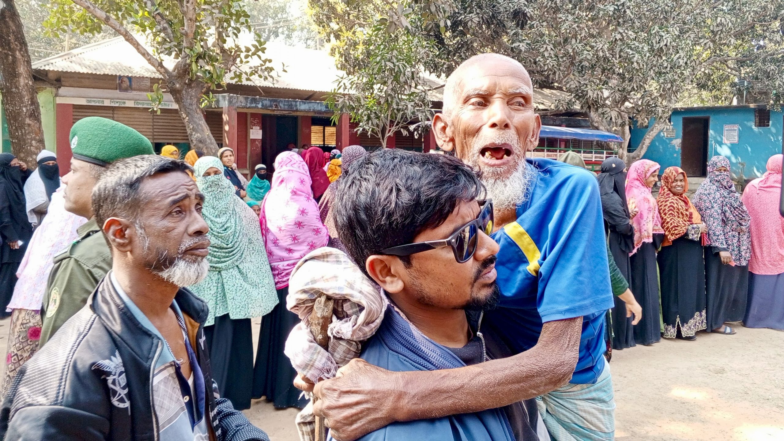 দাদাকে কোলে করে ভোটকেন্দ্রে নিয়ে আসা নাতি ফিরোজ আলী বলেন, “ভোটের দিন ভোট দিতে না এলে কেমন হয়? তাই সকাল সকাল দাদাকে নিয়ে এসেছি।” তিনি জানান, দীর্ঘ নয় বছর পর ভোট দিতে পেরে তার দাদা ভীষণ আনন্দিত।