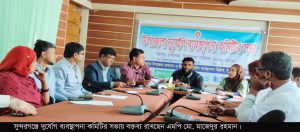 সভায় সরকারি কর্মসূচির আওতায় দুর্যোগ প্রশমন দিবস পালনের নিয়ে ব্যাপক আলোচনা করা হয়। এর আগে দুর্যোগ সংক্রান্ত একটি প্রকল্পের অবহিত করণ সভা অনুষ্ঠিত হয়।