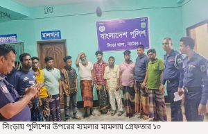 নাটোরের সিংড়া উপজেলার রামানন্দ খাজুরা ইউনিয়নের থেলকুর গ্রামে বিশেষ অভিযান চালিয়ে পুলিশ অ্যাসল্ট মামলায় এজাহারভুক্ত ৫ জনসহ মোট ১০ জনকে গ্রেফতার করেছে সিংড়া থানা পুলিশ।