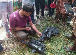 শনিবার (৭ মার্চ) দুপুরে উপজেলার হান্ডিয়াল ইউনিয়নের বাঘলবাড়ি গ্রামের মাঠের পুকুর নামক একটা পুকুর থেকে মূর্তিটি উদ্ধার করা হয়।