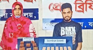 আটককৃতরা হলেন, যশোর সদরের ফরিদপুর মাঠপাড়া এলাকার সুরুজ্জামানের ছেলে আলী শেখ এবং সাতক্ষীরার কলারোয়া উপজেলার দক্ষিণ ভাদিয়ালী গ্রামের মৃত মনিরুল ইসলামের মেয়ে বারতুমা পারভীন।