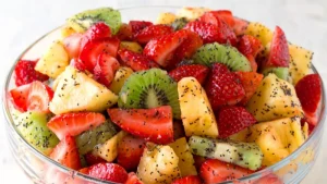 ইফতারে ফ্রুট সালাদ একটি চমৎকার স্বাস্থ্যসম্মত খাবার হতে পারে। লম্বা সময় রোজা রাখার পর শরীরকে সতেজ রাখতে ফ্রুট সালাদের বিকল্প নেই। মৌসুমি নানা রকম ফল দিয়েই ইফতারের জন্য বানানো যাবে ফ্রুটস সালাদ।