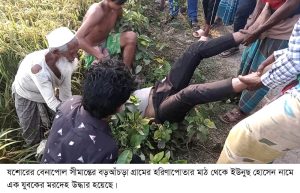 ইয়ানূর রহমান : যশোরের বেনাপোল সীমান্ত থেকে ইউনুছ হোসেন (৩৫) নামে এক যুবকের মরদেহ উদ্ধার করেছে পোর্ট থানা পুলিশ। বৃহস্পতিবার (২৩ এপ্রিল) সকালে বেনাপোলের বড়আঁচড়া গ্রামের হরিণাপোতার মাঠ থেকে লাশটি উদ্ধার করা হয়। নিহত ইউনুছ বেনাপোল পোর্ট থানার ছোট আঁচড়া গ্রামের মোস্তাব আলীর ছেলে।
